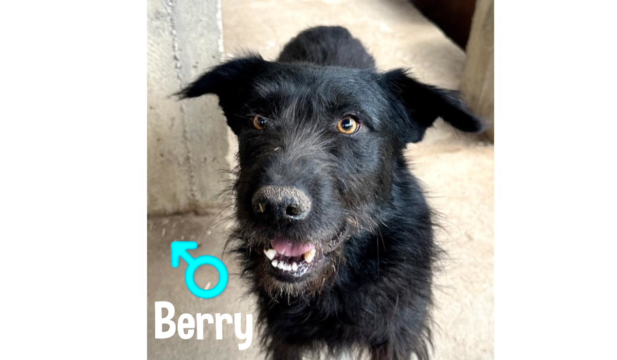 Berry ist ein ca. 2 Jahre alter Rüde, mittelgroß (15–20 kg), der trotz seiner Vergangenheit voller Lebensfreude ist.