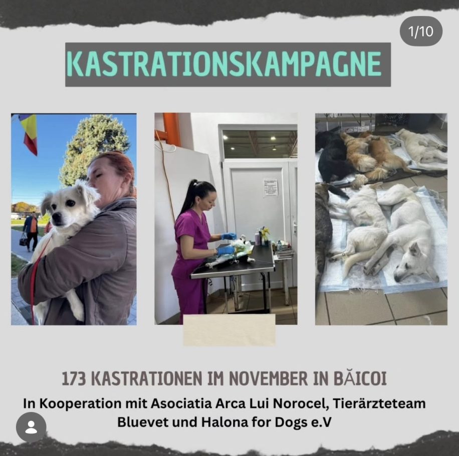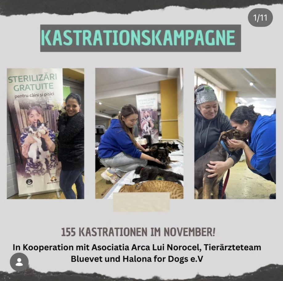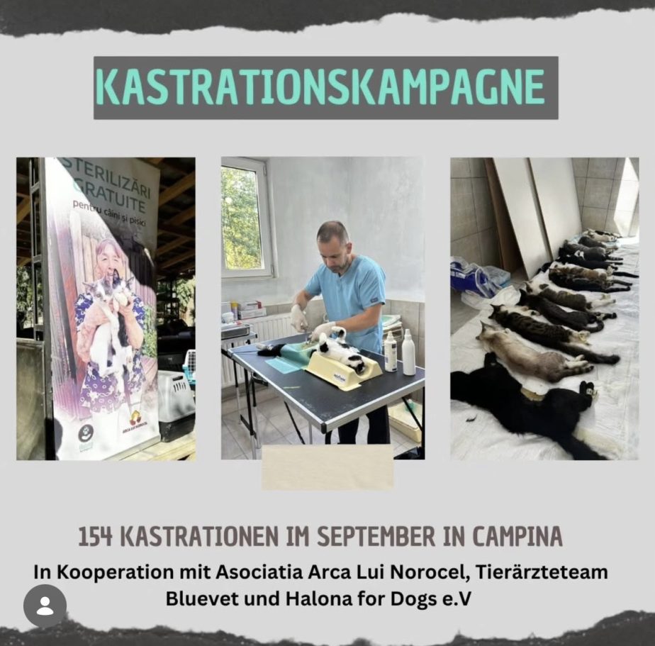 Gemeinsam mit dem rumänischen Verein "Arca Lui Norocel", dem Tierärzte-Team "BlueVet" und all den engagierten Ehrenamtlichen führen wir alle 2 Monate eine Kastrationskampagne in Rumänien durch. Nur durch regelmäßige Kastrationen können wir das immense Tierleid nachhaltig reduzieren.