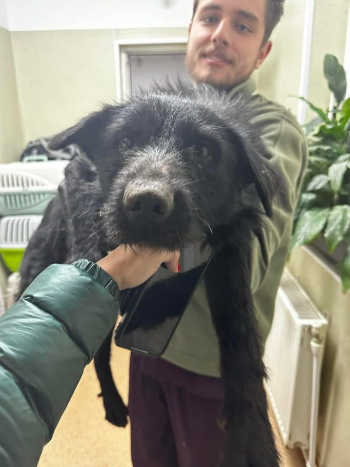 Letzten Winter wurde er halb erfroren gerettet. Leider zeigte sich später, dass er früher an Staupe erkrankt war, was sein Nervensystem beeinträchtigt hat. Manchmal setzt er eine seiner Hinterpfoten nicht richtig auf – doch ansonsten ist er ein ganz normaler Hund!