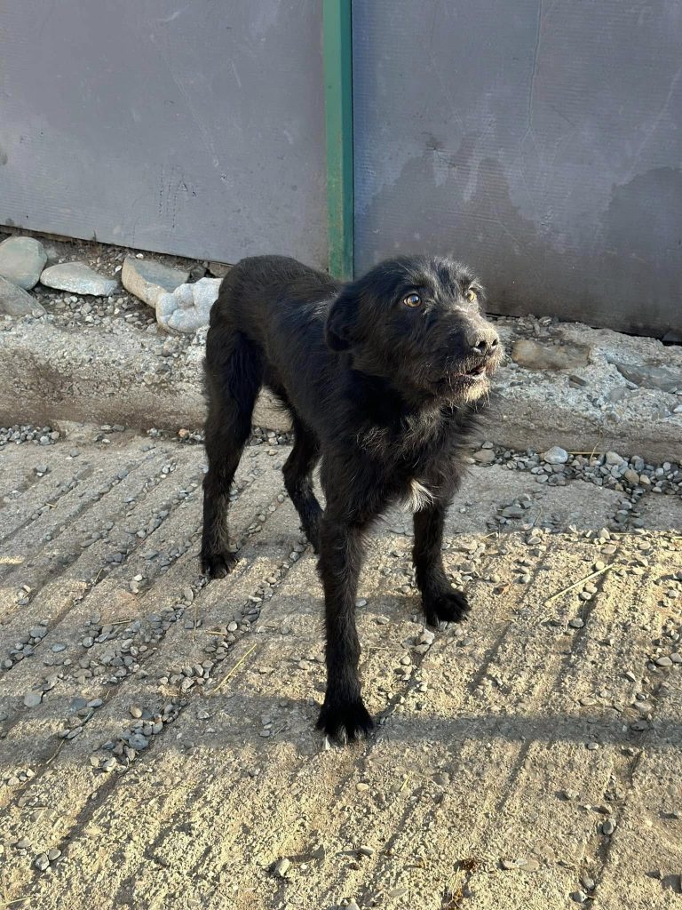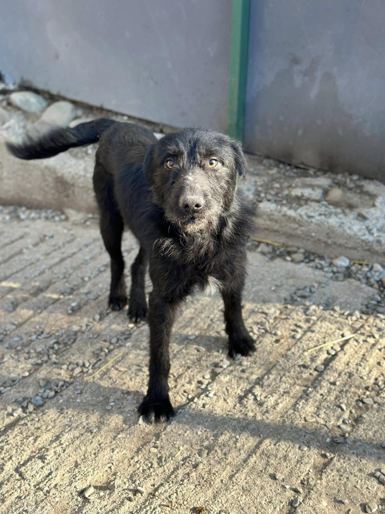 Letzten Winter wurde er halb erfroren gerettet. Leider zeigte sich später, dass er früher an Staupe erkrankt war, was sein Nervensystem beeinträchtigt hat. Manchmal setzt er eine seiner Hinterpfoten nicht richtig auf – doch ansonsten ist er ein ganz normaler Hund!